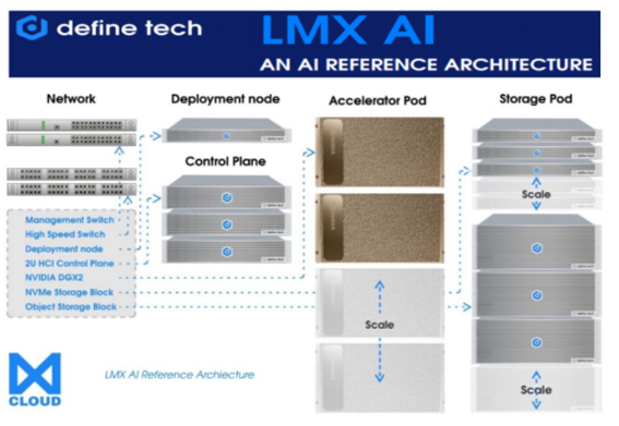 The LMX AI reference architecture features our best-practice suggestions for compute, networking, storage, power, cooling, and more, in a integrated AI infrastructure that serves to progress your AI strategy without blowing the budget. With LMX, we have architected a high-performance, scalable AI solution that’s optimized, affordable and easily scalable. Powered by NVIDIA DGX A100 GPU, our own AI optimized Cloud software and LightOS NVMe storage. The platform includes High speed ethernet switches. |